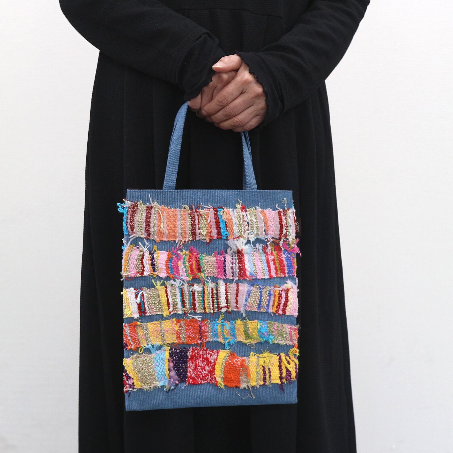 シンプルな形でさをり織布を引き立てた遊び心満載のバッグです!